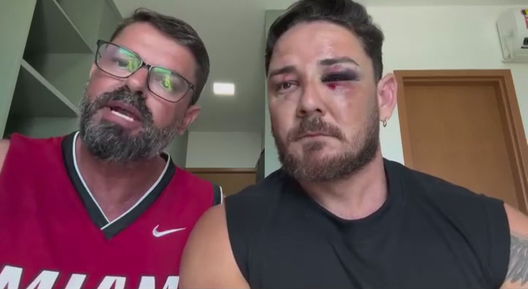 Nas imagens, Johnny aparece com o rosto inchado e vários hematomas. Ele disse que foi atingido com socos e pontapés. “Meu rosto está completamente danificado, toda a lateral do meu corpo aqui está machucada, porque eles bateram muito em mim”, relatou.